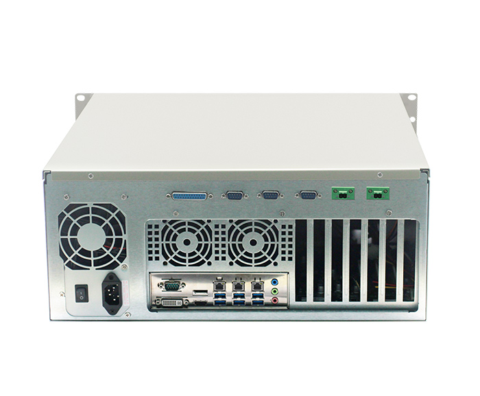 1*VGA 1*HDMI 1*DP 1*DVI 6*USB3.0 3*LAN 1*LINE OUT 1*MIC 1*LINE IN 1*LPT 2*鳳凰端子接口RS485 4*DB9接口的RS232或者RS485(主板上的跳帽設(shè)置和BIOS設(shè)置來(lái)選擇)